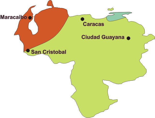 The following map of the atmospheric corrosivity measured in Venezuela was adapted from "Atmospheric Corrosion of Copper in Ibero-America" by M. Morcillo, E. Almeida, M. Marrocos, and B. Rosales, Corrosion, Vol. 57, No. 11, pages 967-980.
