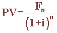 which states that present value (PV) of a future cash flow (Fn) after (n) time periods equals the future amount (Cn) discounted to zero date at some interest rate (i). The value of "n" is usually specified in years and "i" as the annual interest rate. Several capital budgeting techniques exist that are based on the time value of money. (reference)