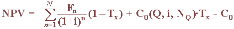 The PV of the tax savings cash flow from a depreciation expense series (DES) of an original cost is given by: PVDES = C0(Q, i, NQ)·Tx