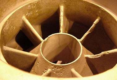![]() | The photographs illustrated localized corrosion, especially as pitting but with some apparent erosion, on the inside of the Type 316L (UNS S31603) pump column spools. There is also deep pitting of the bushing housing and support and in the heat-affected zone of the spool flange welds. There has also been pitting on internal surfaces of a Type 904L (N08904) pump bowl, as well as erosion-corrosion of the tips of the volute. |
