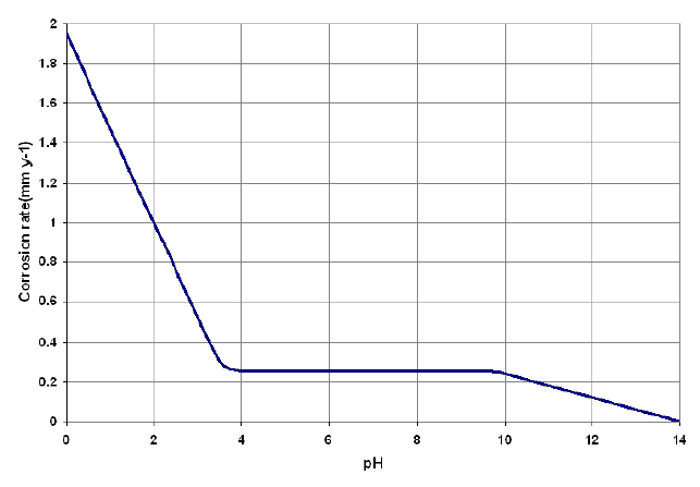 Corrosion of steel as a function of water pH