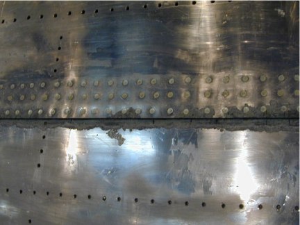 An advanced form of crevice corrosion is called pillowing. Notice how the rivet heads appear to be lower than the surrounding skin surface. During the investigation of the Aloha Boeing 737 aircraft incident, evidence was found of multiple site fatigue damage leading to structural failure.