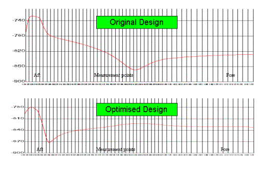 Figure 16 - Potential Distribution (mV) on the Ship Hull 1.32 m below the water line.
