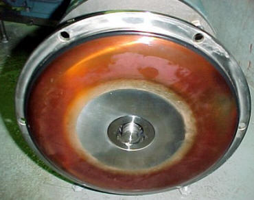 The metallurgical condition of the impeller seems to have an influence on the rate of metal removal. When the austenitic family of stainless steel solidifies from the melt two metallurgical phases are present, austenite and delta ferrite. Delta ferrite formation is dependent on the composition of the alloy and if it is less than 8% it can be dissolved by heat treatment. Cast impellers generally have high delta ferrite because of higher silicon added to promote fluidity of the steel during casting. This means heat treatment may not dissolve all the delta ferrite. The reason delta ferrite is a problem is because it erodes more easily than the austenite and is higher in iron. An eroded surface of a cast impeller is illustrated in Figure 3 and rouged pump parts are illustrated in Figure 4.
