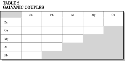 The metal acting as a cathode turns pink therefore the other metal must be the anode and is corroding (rusting). How do the results in Table 2 compare with the voltage ranking on Table 1?